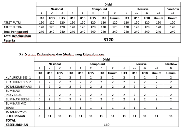 - Divisi Recurve Umum, U-18 , U-15 & U-13